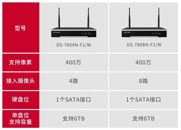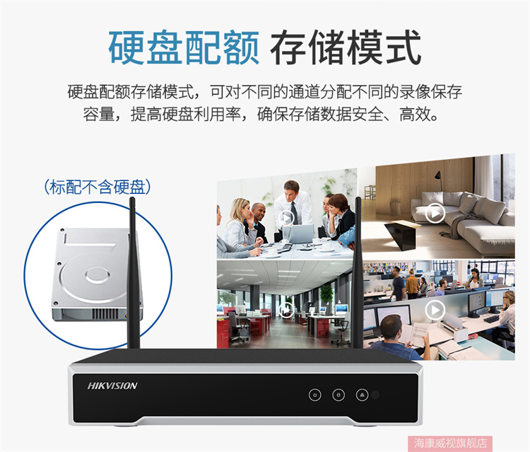 ??低?DS-7804N-F1/W(4路/1盤位) ??低暉o線WIFI網(wǎng)絡(luò)硬盤錄像機(jī)NVR監(jiān)控主機(jī)連接??禑o線監(jiān)控攝像頭