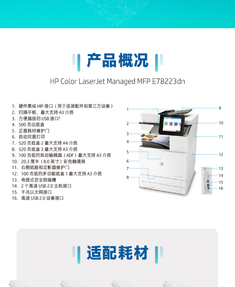 惠普 hp 78223dn 彩色激光復印打印掃描多功能一體機A3幅面