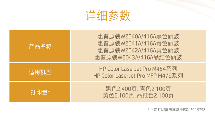 惠普(HP)W2042A 416A原裝黃色硒鼓 適用hp m454dw 454dn 479dw 479fdw 打印機(jī)硒鼓
