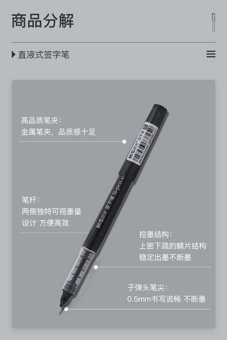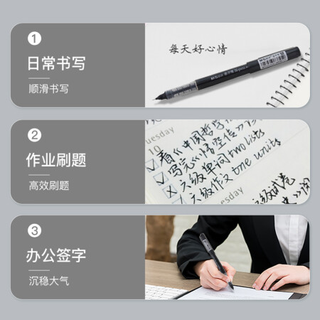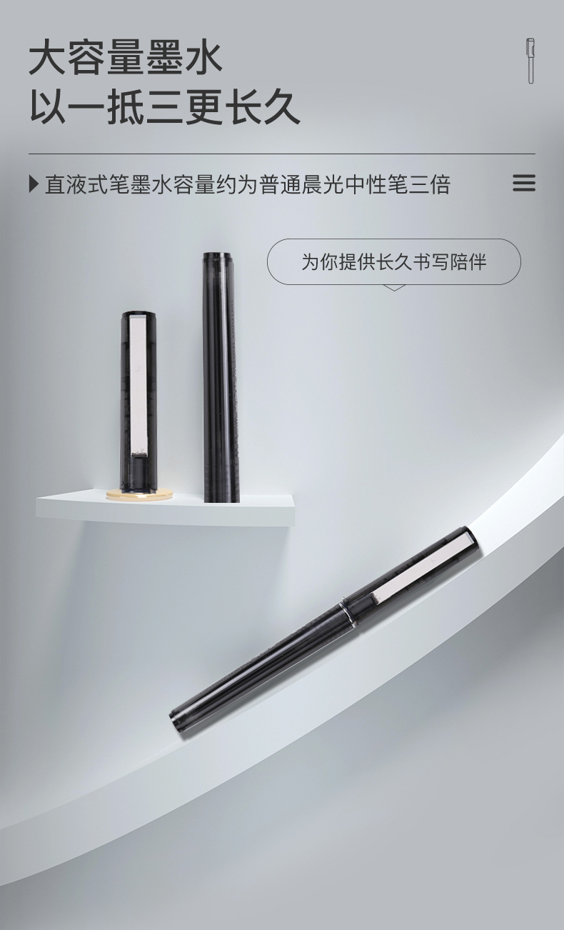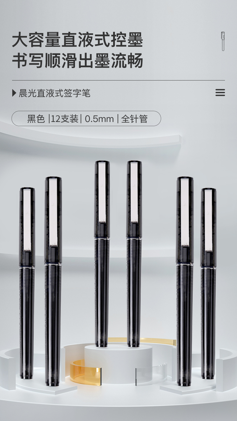 晨光 M&G 文具直液筆0.5mm黑色學(xué)生簽字筆 辦公全針管中性筆水筆走珠筆 辦公用品 12支/盒ARP41801