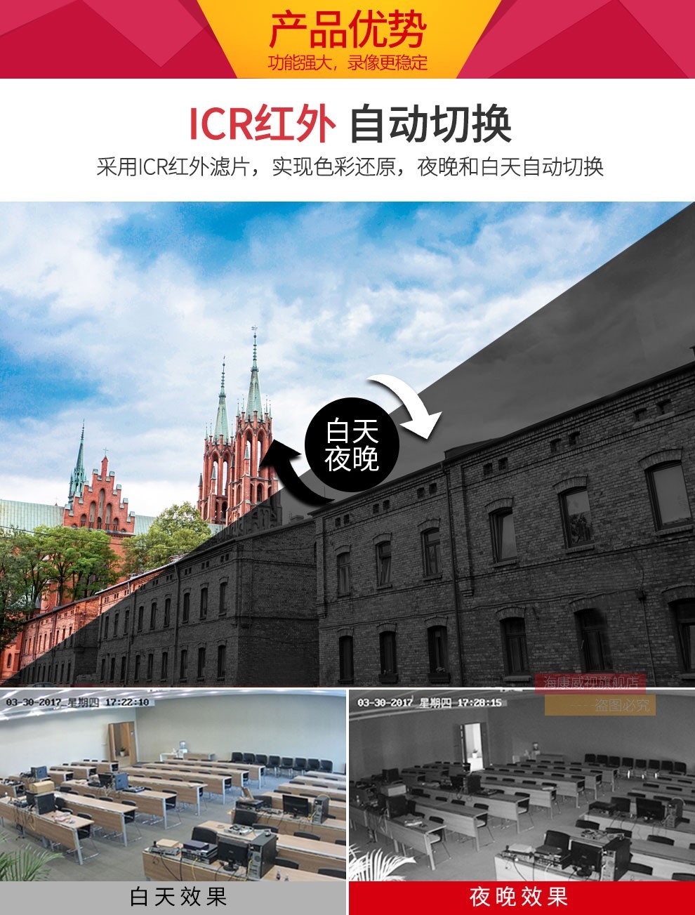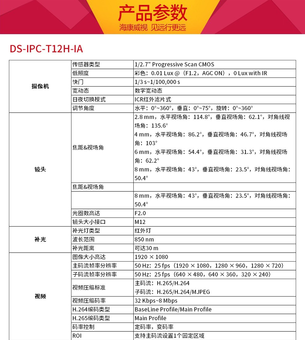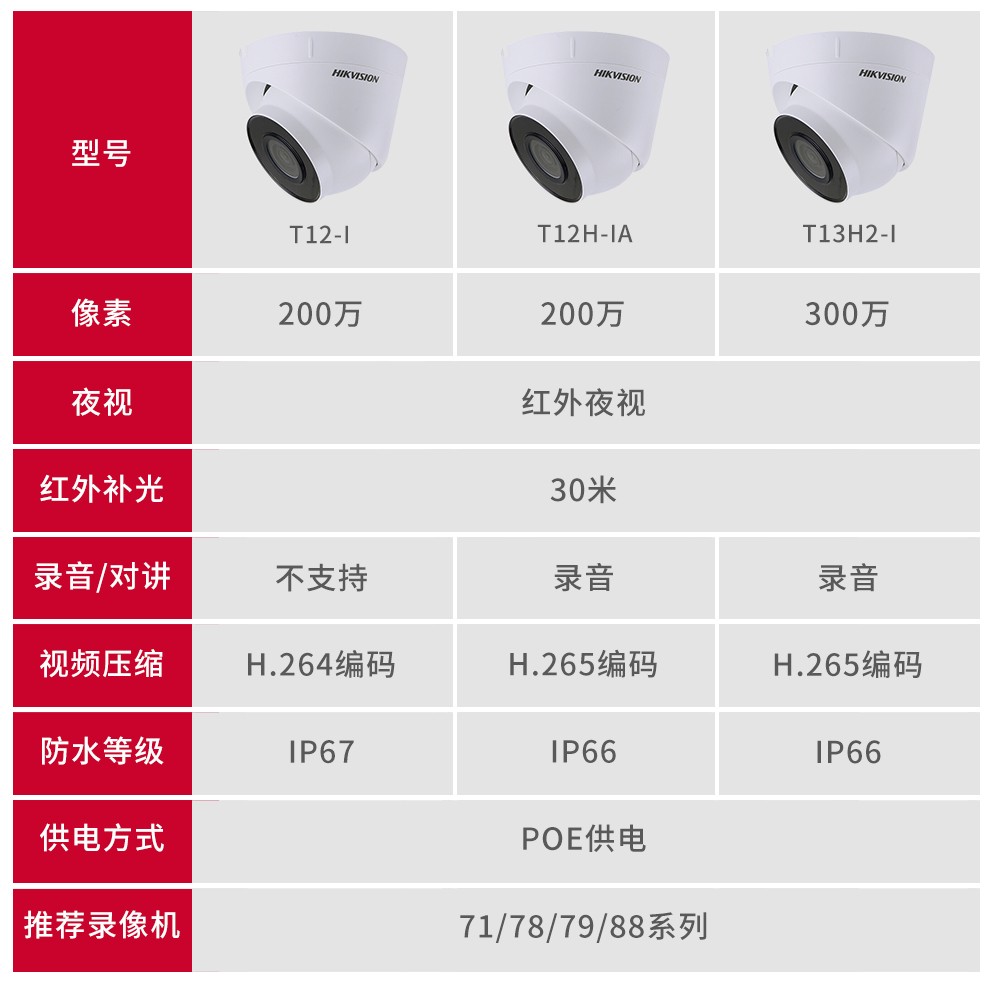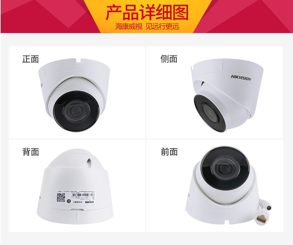 監(jiān)控攝像機(jī) ??低暎℉IKVISION)網(wǎng)絡(luò)監(jiān)控攝像頭紅外夜視室內(nèi)半球攝像機(jī)帶POE DS-IPC-T13H2-I(300萬拾音) 4MM焦距