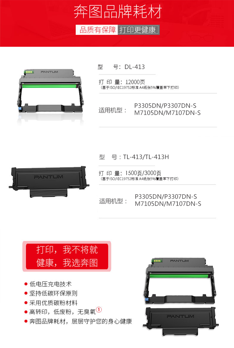 原裝奔圖DL-413硒鼓P3305DN M7105DN P3307DN-S M7107DN-S鼓組件