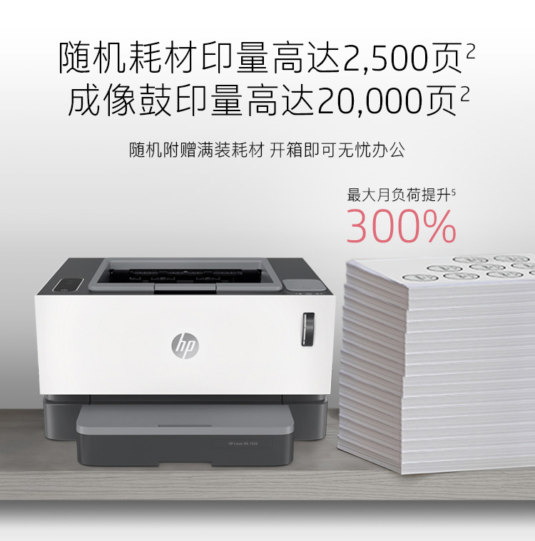 惠普(HP)創(chuàng)系列NS1020c智能閃充大粉倉(cāng)激光打印機(jī) 1020plus升級(jí)款半容裝 15秒充粉單打成本5分錢
