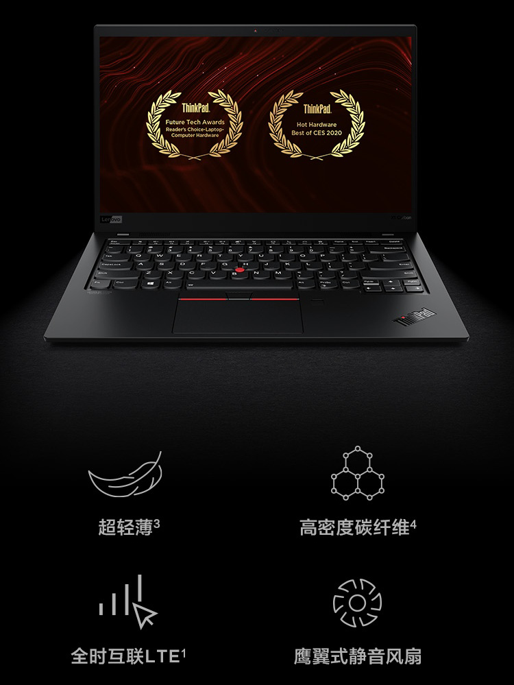 聯(lián)想ThinkPad X1 Carbon 2020(7GCD)14英寸輕薄筆記本i7-10710U/16G/512GSSD/FHD/4G版