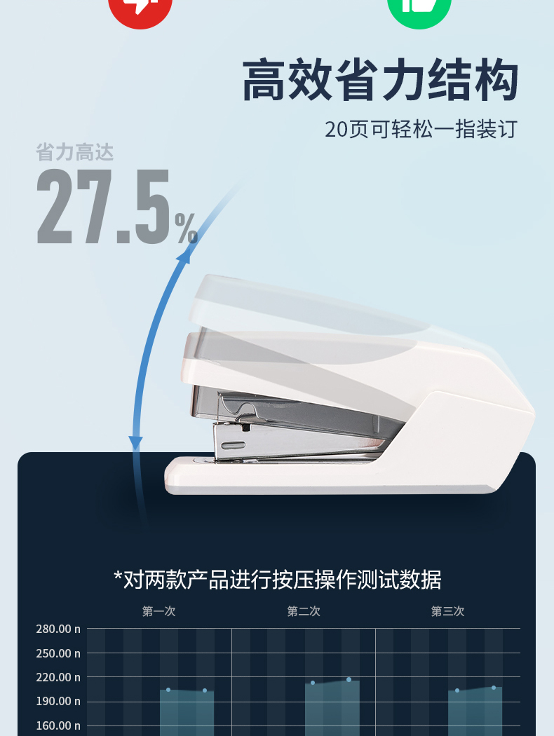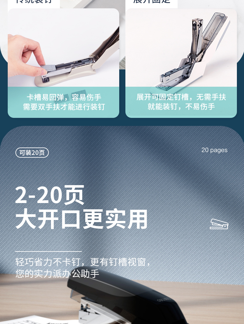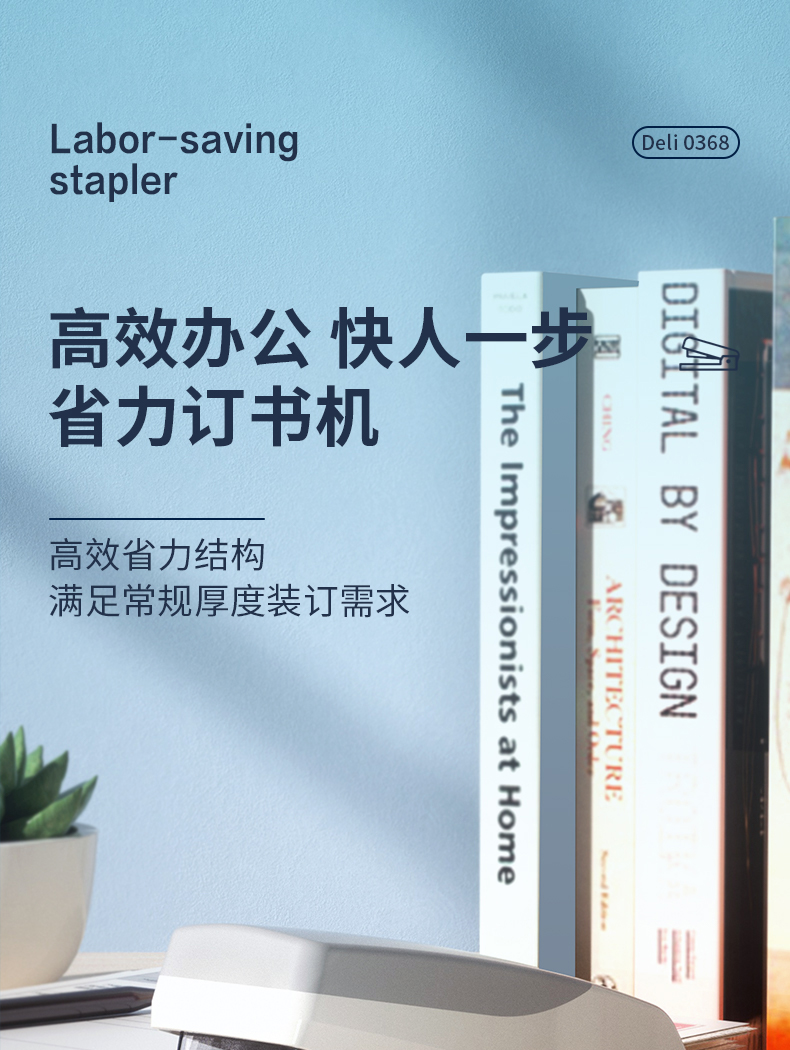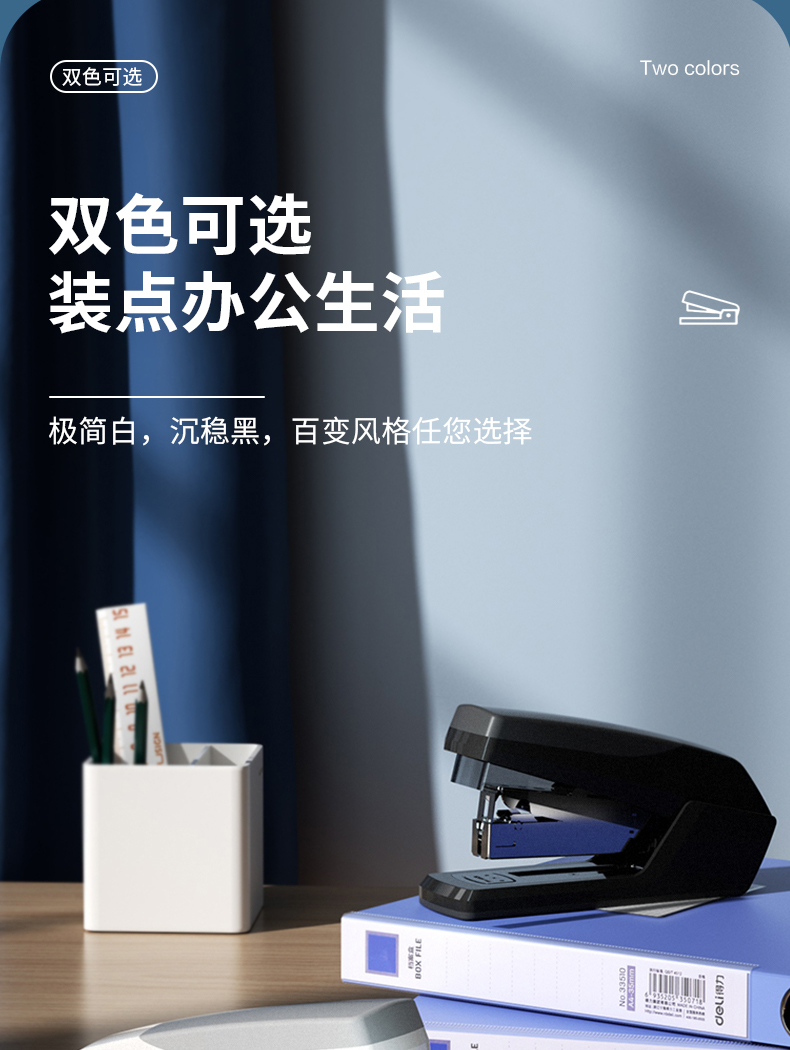 得力 deli 省力型訂書機/訂書器 適配24/6 12# 及26/6訂書釘 辦公用品 白色0368