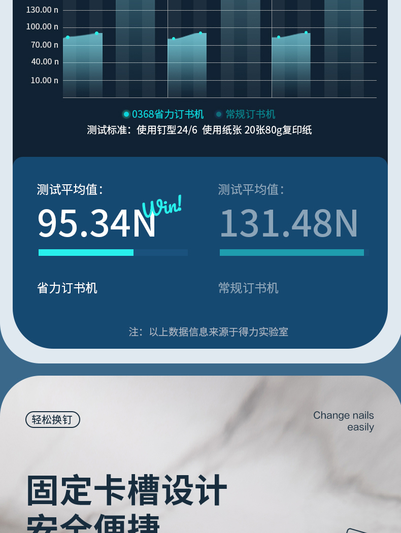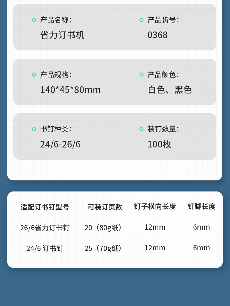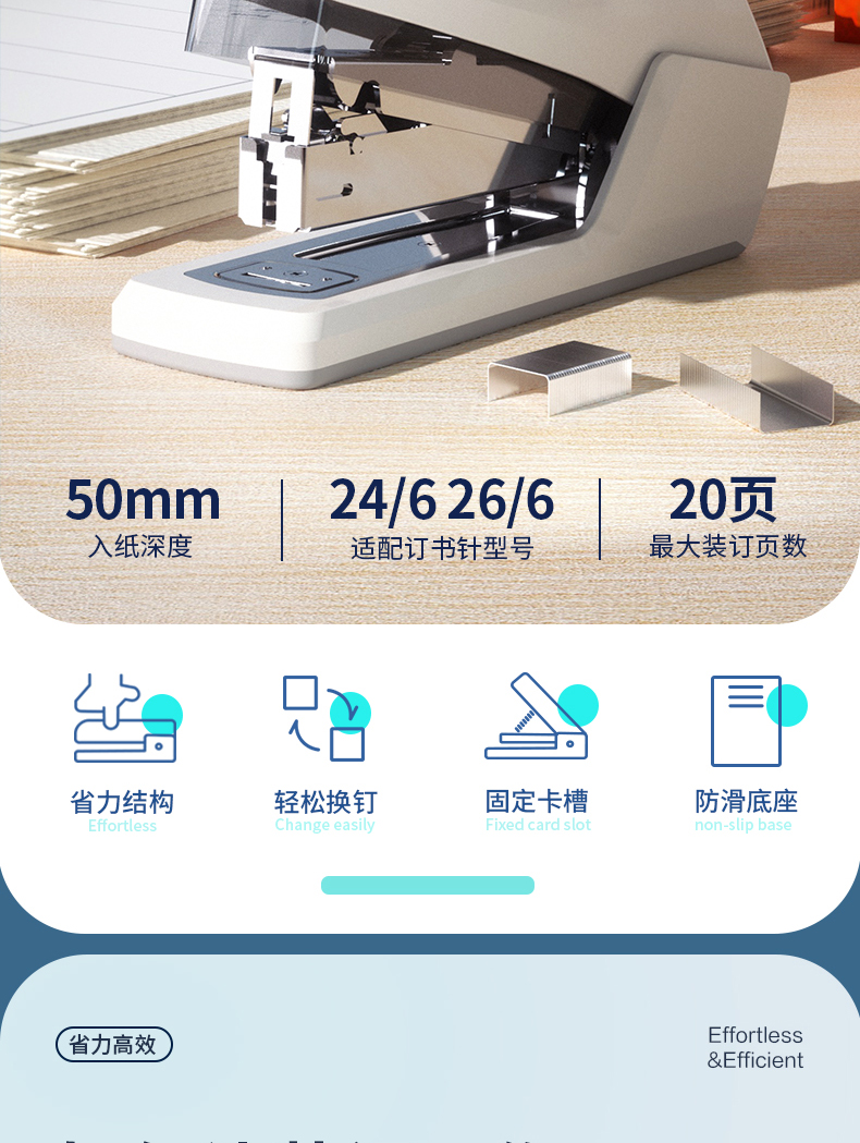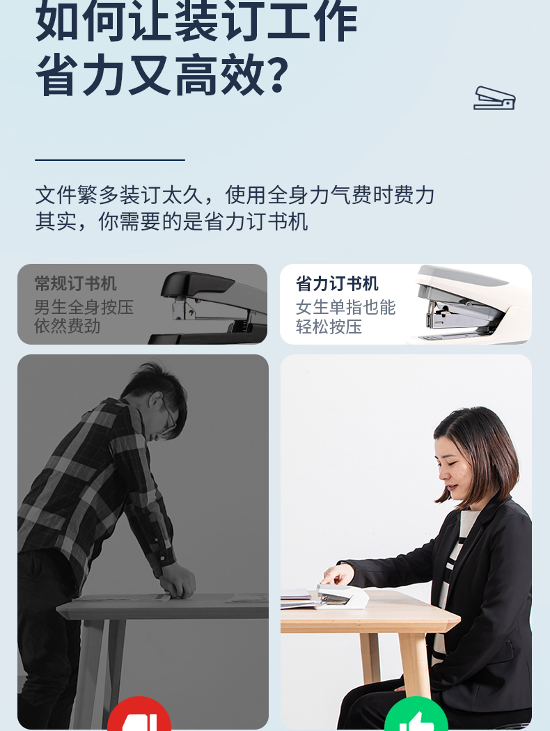 得力 deli 省力型訂書機/訂書器 適配24/6 12# 及26/6訂書釘 辦公用品 白色0368