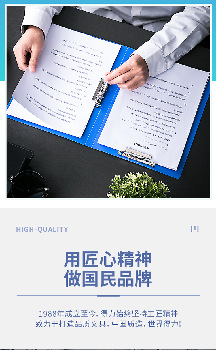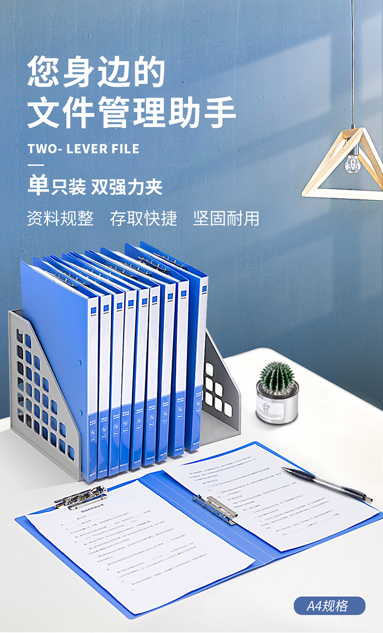 得力 deli A4金屬雙強(qiáng)力夾硬文件夾 大容量試卷收納資料夾詩朗誦簽約夾板 5302藍(lán)色1只